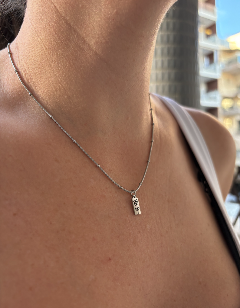 שרשרת מלבן קטנה ומיוחדת בחריטה אישית. המתנה הכי מרגשת שיש