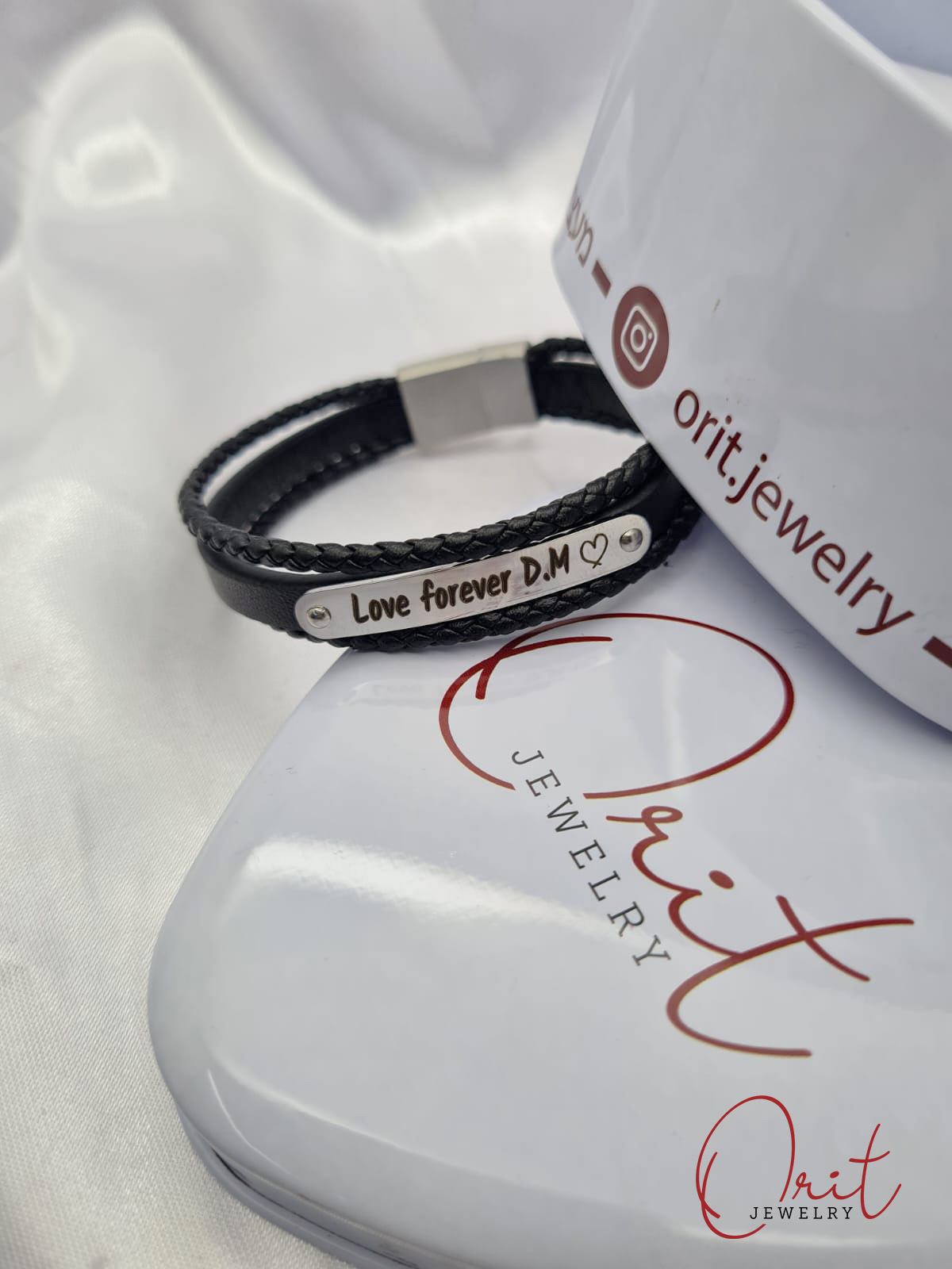 צמיד עור לגבר עם חריטה – צמיד שהכי כיף לענוד על היד עם סגירת מגנט חזקה המיועדת לגברים